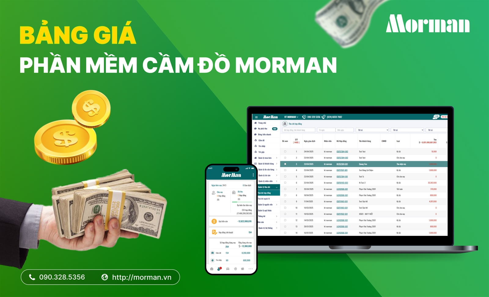 Bảng giá phần mềm cầm đồ full tính năng - Morman